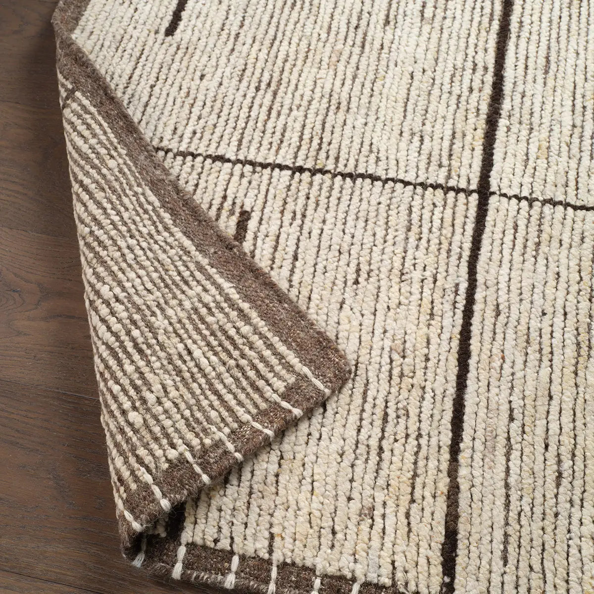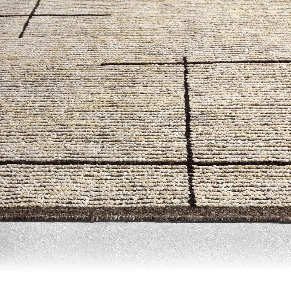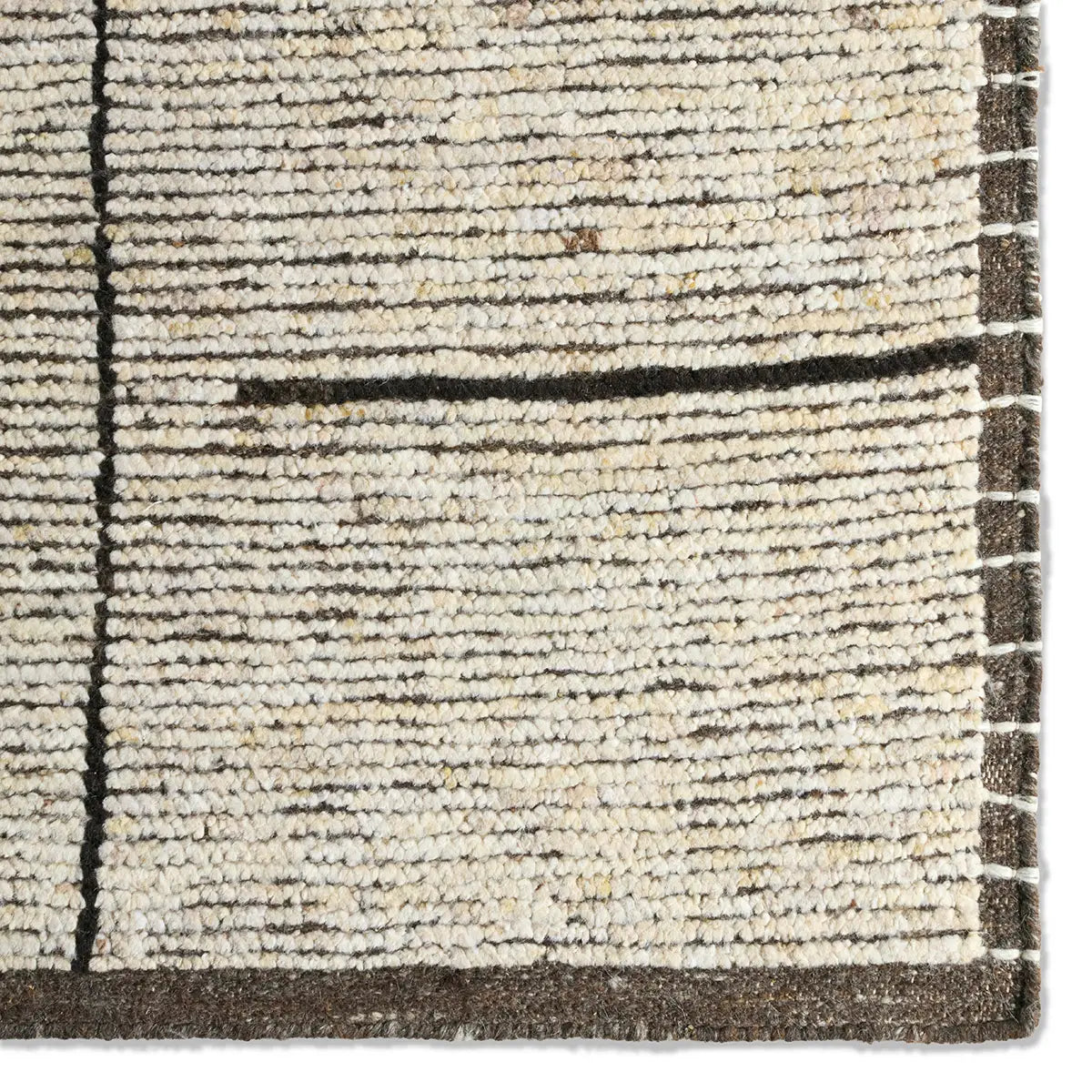 Subtle linear textures and natural colorways define the irresistible quality of the Seora collection. The Dorian area rug features a series of parallel and perpendicular lines for an intriguing dose of modern appeal. The textural, wool pile contains no dye, reflecting the natural colors of the sheep, for a rich and grounding palette of brown, cream, and gray.