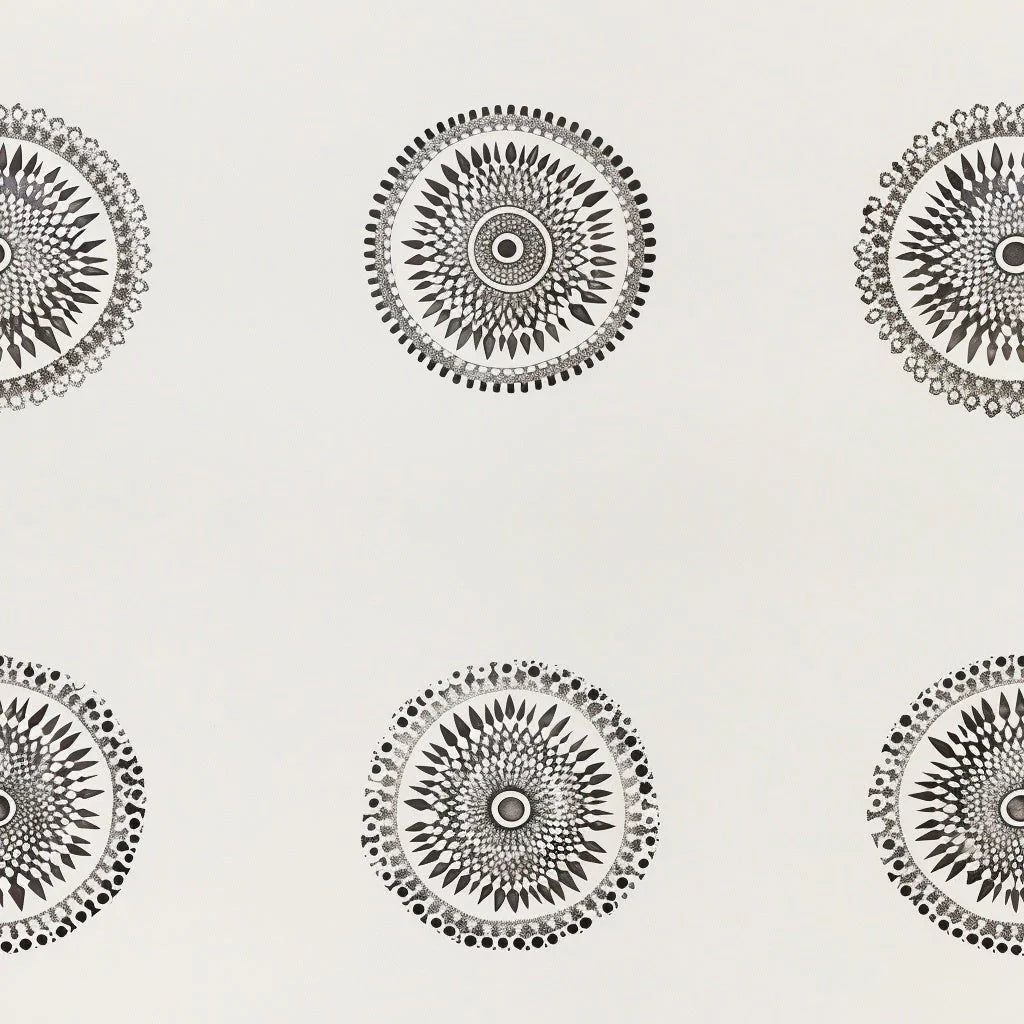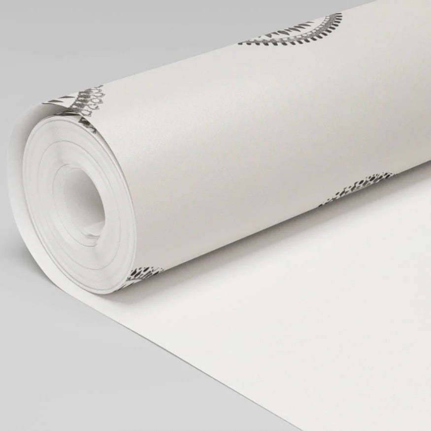 Introducing the Holly Wallpaper, a striking design showcasing intricate black and white circular mandalas on a crisp white background. This bold yet elegant wallpaper adds a touch of modern sophistication to any room. Its detailed patterns create a focal point that enhances both contemporary and eclectic decor styles, making it perfect for living spaces, bedrooms, or feature walls.