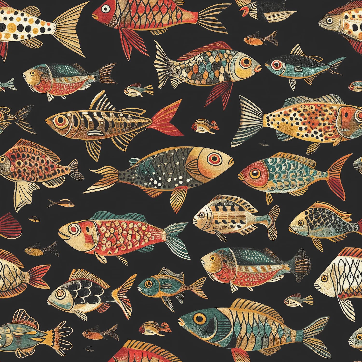 Immerse your space in the vibrant depths of the ocean with 'Stanley' wallpaper, a striking black canvas adorned with a kaleidoscope of colorful fish, adding a dynamic and captivating touch to any room.