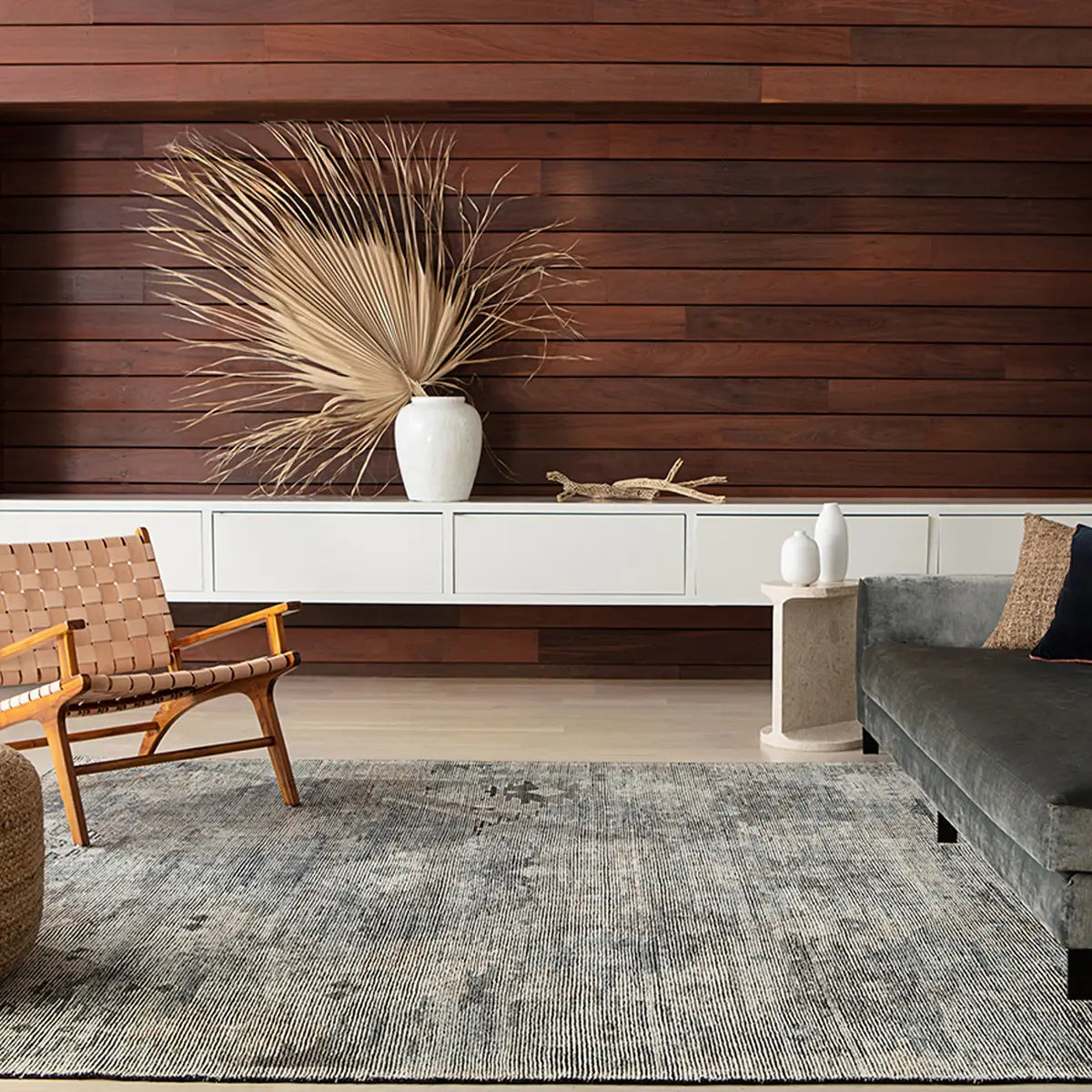 The Rize collection offers intricate and delicately designed global patterns to the modern home. A dynamic tribal motif creates an all-over design on the artistically distressed Nakoda area rug. In a black, tan, white, and blue colorway, this durable hand-knotted wool accent blends a timeless craft with contemporary charm.